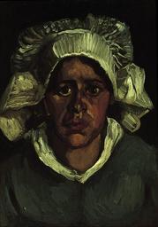 | Keywords: Vincent van Gogh - Hoofd van een boerin met een Witte Bonnet.jpg Artwork Creator Vincent van Gogh en Head of a Peasant Woman in a White Bonnet fr Tête de paysanne au bonnet blanc Nuenen 1885 03 oil canvas cm 47 35 Norton Simon Museum accession number F 1985 1 P http //www vangoghgallery com/catalog/Painting/215/Head 20of 20a 20Peasant 20Woman 20with 20White 20Cap html vangoghgallery com object history Galerie d'Art Ed Oldenzeel Rotterdam ca 1902/3 to <br/> Dr H J Nieboer The Hague; ca 1903/04 by 1905 by inheritance to his daughter;<br/> Mrs S de Voogd-Nieboer Rijswijk sale New York Parke-Bernet 14 March 1956 lot 89 ill as Head of a Peasant Woman <br/> Hammer Galleries New York <br/> sale London Sotheby ™s 6 December 1961 lot 61 ill as Tête d ™une paysanne to ;<br/> R M Light Boston 1963 <br/> Mr and Mrs David Bakalar Boston sale New York Sotheby ™s 14 November 1984 lot 2 ill Tête de paysanne au bonnet blanc ;<br/> The Norton Simon Foundation <br/> credit line The Norton Simon Foundation Van Gogh catalogues 85a 694 http //www nortonsimon org/collections/browse_title php id F 1985 1 P Norton Simon Museum PD-old-100-1923 1890 Head of a Peasant Woman in a White Bonnet |