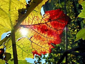 Keywords: vine autumn leaf back light close emerge leaves in the autumn fall color plant structure