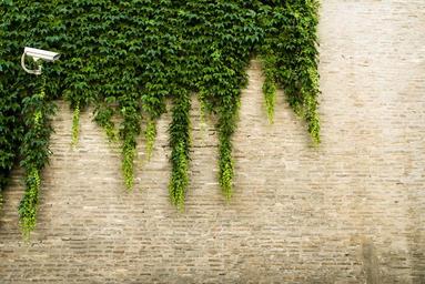 Keywords: vineyard surveillance brick wall surveillance camera vines green hanging