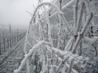 Keywords: vineyard vines ice frost cold winter hoarfrost winegrowing wine vine slope nature rebstock agriculture mood