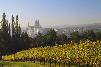 Keywords: vineyard wine vines winegrowing trees landscape meissen city castle dom church castle hill germany saxony towers east germany