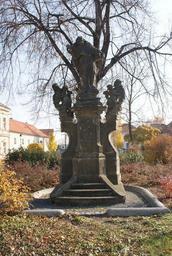 Keywords: Vinoř square 05.JPG en A statue on the Vinoř square in Prague Vinoř cs Sousoší na Vinořském náměstí ve Vinoři 41258/1-1988 own Feťour 2010-10-30 Statue of John of Nepomuk in Vinoř