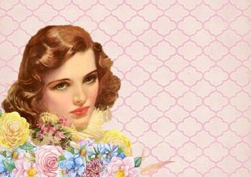 Keywords: vintage background lady pink flowers retro girl woman spring female summer hair model fashion pink flowers fashion lady face beauty hair beauty girl hair style brunette blossom scrapbook decoupage collage