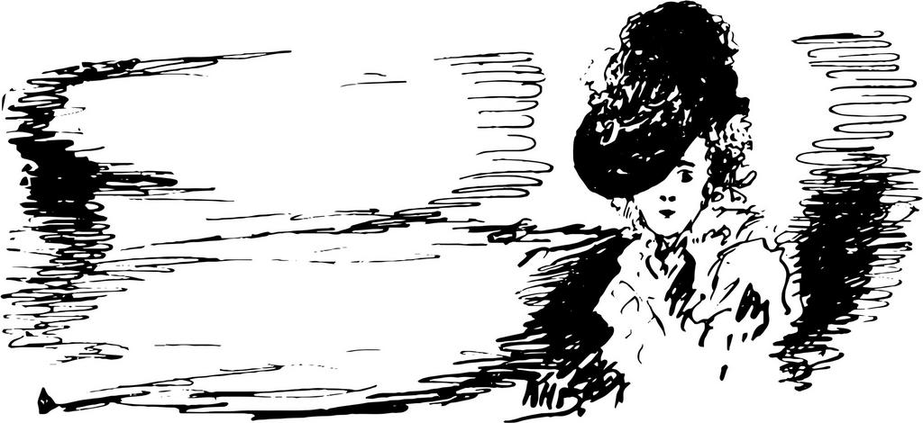 Keywords: vintage black and white sketch drawing retro old female woman people person face copyspace banner elegant style portrait old-fashioned old fashioned