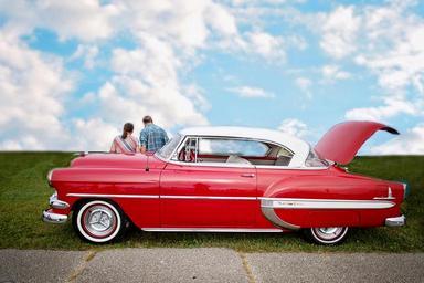 Keywords: vintage car red old automobile auto retro classic transportation stylish shiny