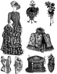 Keywords: vintage fashion old clothing edwardian dress jacket collage sheet design creative drawing original aged artistic romantic bag hat frills corset elegant history style historical france sightseeing