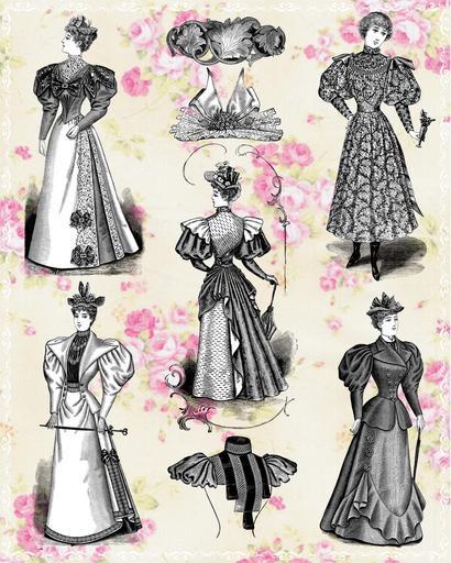 Keywords: vintage lady fashion collage hat nineteenth century edwardian set collection design white black clothing icon silhouette face drawing retro character celebration hand person human drawn classic elegant