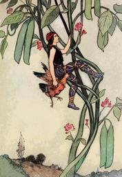 Keywords: vintage old antique charming enchanted enchanting retro illustrated warwick goble illustrator fairy tale story book illustration art fantasy nature plant beanstalk pods vegetables man climbing adventure