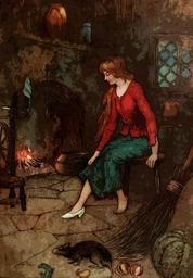 Keywords: vintage old antique retro fairy tale stories story fairytale book illustration warwick goble illustrative scene scenic charming people interior fire fireplace home warm cosy cinders cinderella princess classic