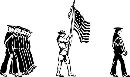 Keywords: vintage old old fashioned antique black black and white sketch drawing victorian retro people men male group military patriotic patriotism flag america usa american flag waving the flag marching guards