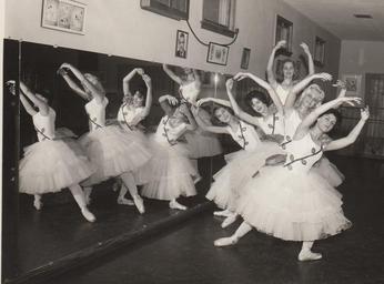 Keywords: vintage retro ballet dance studio mirror history retro-styled 40s females tutu costume fashion 1940 pointe girls students grace art