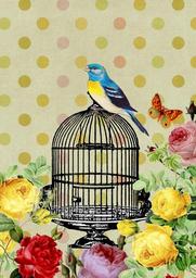 Keywords: vintage scrapbook background page bird bird cage cage rose polka dot flower bouquet heart paper decorative project craft decoupage design floral template adults detailed different empty blank light luxury decor art collage
