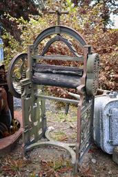 Keywords: vintage washing mangle equipment laundry old domestic housework laundering metal outdoor old-fashioned retro