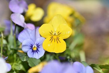 Keywords: violet flower spring flower flowers blue yellow garden nature close