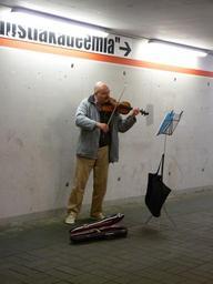 Keywords: Violinist as street musician.JPG Tallinn Estonia own 2014-05-09 Dmitry G Personality rights Street musicians in Estonia People with violins Laikmaa tunnel 2014 in Tallinn