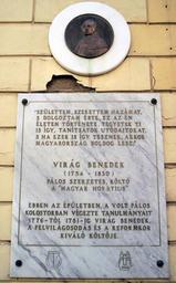 | Keywords: Virág Benedek Pécs.jpg Virág Benedek emléktáblája Pécsett “ photo taken by uploader User Csanády in 2006 Reliefs in Pécs 2007-03-18 own assumed Csanády Benedek Virág Plaques in Pécs Plaques to poets in Hungary Plaques to teachers in Hungary Plaques to priests in Hungary Here-studied plaques in Hungary |