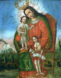 | Keywords: Virgen de Latacunga Quito EthnM Berlin.jpg School of Quito 'Virgen de Latacunga im Hintergrund der Vulkan Cotopaxi der 1698 ausgebra und die Stadt Latacunga zerstörte Virgen de Latacunga in the background volcano Cotopaxi that erupted in 1698 devastating the city of Latacunga 1706 Oil on canvas Ethnological Museum Berlin Germany Ethnologisches Museum Berlin own Author User FA2010 2009-02 other versions Paintings of the Quito School Südamerikaabteilung in Ethnological Museum Berlin 18th-century paintings of Madonna and Child with the Infant Saint John 1706 paintings Cotopaxi in art Latacunga Volcanoes in art |