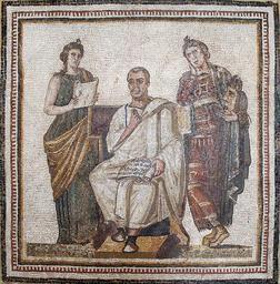 | Keywords: Virgil mosaic in the Bardo National Museum (Tunis) (12241228546).jpg Der große lateinische Dichter Virgil in den Händen die Schrift Aeneid Links steht die Muse Klio Geschichte und rechts steht die Muse Melpomene Tragödie Das Mosaik das aus dem 3 Jahrhundert nach Christus stammt wurde in der Hadrumetum in Sousse Tunesien entdeckt und ist jetzt im Bardo-Museum in Tunis Tunesien The great Latin poet Virgil holding a volume on which is written the Aenid On either side stand the two muses Clio history and Melpomene tragedy The mosaic which dates from the 3rd Century A D was discovered in the Hadrumetum in Sousse Tunisia and is now on display in the Bardo Museum in Tunis Tunisia Mosaico romano del III secolo d C che rappresenta Virgilio con in mano l'Eneide tra le Muse Clio e Melpomene Scoperto a Sousse in Tunisia ora è esposto nel Museo del Bardo a Tunisi Mosaico con el poeta latino Virgilio junto a Clío musa de la Historia y Melpómene musa de la Tragedia Museo del Bardo Túnez; hallado en Sousse Siglo III d C Mosaïque romaine du IIIe siècle entourée d'une frise au Musée du Bardo Au centre Virgile assis en toge blanche avec en main le rouleau de L'Énéide dont on peut déchiffrer le vers 8 lang la Musa mihi causas memora quo numine laeso Muse rappelle-moi les causes par quelle volonté divine entre deux Muses en robes pourpres Clio tenant un parchemin et Melpomène un masque de théâtre Découverte à Sousse en Tunisie https //www flickr com/photos/badwyer/12241228546/ IMG_4632 2014-01-26 10 10 https //www flickr com/people/87285231 N04 Boyd Dwyer 36 809319 10 134415 source Flickr PD-art-100 cc-by-sa-2 0 Dyolf77 2015-03-20 Virgil mosaic in the Bardo National Museum Tunis |