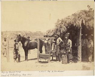 | Keywords: Virginia, Petersburg, Army Forge - NARA - 533351.jpg Scope and content General notes 533351 Local identifier 165-SB-77 War Department 1789 - 09/18/1947 NARA-Author Knox David Photographer 3527912 <br /> Still Picture Records Section Special Media Archives Services Division NWCS-S National Archives at College Park 8601 Adelphi Road College Park MD 20740-6001 08/1864 Record group Record Group 165 Records of the War Department General and Special Staffs 1860 - 1952 Record group ARC 494 Photographic Sketch Book of the Civil War by Alexander Gardner compiled ca 1861 - ca 1865 Series ARC 533274 File unit File unit ARC Variant control numbers NAIL Control Number NWDNS-165-SB-77 Other versions <gallery> File Virginia _Petersburg _Army_Forge_-_NARA_-_533351 tif tif File Virginia _Petersburg _Army_Forge_-_NARA_-_533351 jpg jpg </gallery> NARA-cooperation PD-USGov Petersburg Virginia Siege of Petersburg Equipment of the American Civil War Forges in the United States 1864 in Virginia David Knox Military life Horses of Virginia |