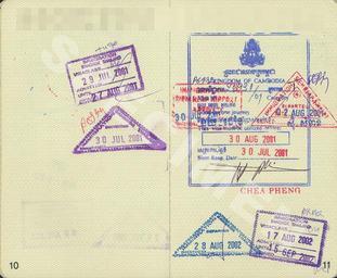 Keywords: Visa kh2001 th2001-2002.jpg Visa-stamps; immigration at Bangkok International Airport Don Mueang; 2001 2002 Thailand and Siem Reap International Airport 2001 Cambodia own 2001 2002 Manfred Werner - User Tsui Official works of Thailand and Cambodia please see tag left thumb cropped PD-TH-exempt as far as Cambodian stamps are reproduced they each form a Decision / certificate of a Cambodian authority which is not protected by copyright according to Article 10 b of the http //www moc gov kh/laws_regulation/New_Update/Law 20on 20Copyright-31May 202002 pdf Cambodian Copyright Law Visas of Cambodia Don Muang International Airport Passport stamps of Thailand Siem Reap-Angkor International Airport