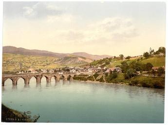 | Keywords: Visegrad, Bosnia, Austro-Hungary WDL2636.png Artwork ru Вышег ад Босния Авст о-Венг ия fr Visegrad Bosnie Autriche-Hongrie en Visegrad Bosnia Austro-Hungary zh 奥匈 国波斯尼亚的维舍格勒 pt Visegrad Bósnia Austro-Hungaro ar فيزيغراد، البوسنة، المجر النمساوية ru Данный цветной снимок относится к коллекции Виды Авст о-Венге ской импе ии в кото ой соб аны фотог афии популя ных ту истических цент ов Восточной и Цент альной Ев опы конца XIX века анее Авст о-Венге ская импе ия кото ая входила в каталог Дет ойт Паблишинг Кампани а нем изоб ажен мост ехмед-Паши Соколовича че ез еку Д ина в Боснии и Ге цеговине ост пост оенный в конце XVI века был сп оекти ован п идво ным а хитекто ом има ом Коджой Синаном 1490-1588 гг по п иказу Великого визи я Османской импе ии ехмед-Паши Соколовича 1505 или 1506-1579 гг Длина этого моста состоящего из 11 каменных а ок азме ом от 11 до 15 мет ов составляет 179 5 мет ов; он олицетво яет собой пик асцвета монументальной а хитекту ы и ст оительного искусства Османской импе ии В 2007 году этот мост был включен в список всеми ного наследия Ю ЕСКО Дет ойт Фотог афик Кампани была основана в конце 90-х годов XIX века в качестве издательской компании выпускающей фотоп одукцию бизнесменом и издателем из Дет ойта Уильямом А Ливингстоном младшим совместно с фотог афом и фотоиздателем Эдвином Г Хаше ом Они п иоб ели эксклюзивные п ава на использование п оцесса фотох оми ования изоб етенного в Швейца ии Фотох оми ование использовалось для п ев ащения че но-белых фотог афий в цветные и последующей печати фотог афий методом фотолитог афии Благода я этому п оцессу стало возможно массовое п оизводство цветных отк ыток снимков и альбомов для п одажи на аме иканском ынке В 1905 году компания была п еоб азована в Дет ойт Паблишинг Кампани <br> осты; Река Д ина Босния и Ге цеговина и Се бия ; Де евни fr Ce cliché photochrome provient de Vues de l'Empire Austro-hongrois une sélection de photographies de la fin du 19ème siècle des sites touristiques en Europe centrale et orientale auparavant l'Empire Austro-hongrois qui faisait partie du catalogue de la Detroit Publishing Company Il représente le pont Mehmed Pacha Sokolović sur la rivière Drina en Bosnie-Herzégovine Le pont fut construit à la fin du 16ème siècle par l'architecte de la cour Mimar Koca Sinan 1490-1588 sur ordre du Grand vizir Mehmed Pasha Sokolović 1505 ou 1506-1579 Constitué de 11 arches de maçonnerie de 11 à 15 mètres le pont long de 179 5 mètres représente un point culminant de l'architecture monumentale et du génie civil ottomans Le pont a été inscrit sur la Liste du patrimoine mondial de l'UNESCO en 2007 La Detroit Photographic Company était une maison d'édition photographique créée à la fin des années 1890 par l'homme d'affaires et éditeur de Detroit William A Livingstone Jr en association avec le photographe et photo-éditeur Edwin H Husher Ils obtinrent les droits exclusifs d'utilisation du processus suisse Photochrome pour la conversion de photographies noir et blanc en images couleur ainsi que leur impression par photolithographie Cette technique a permis la production en série de cartes postales de tirages et d'albums en couleur sur le marché américain L'entreprise devint la Detroit Publishing Company en 1905 <br>Ponts; Rivière Drina Bosnie-Herzégovine et Serbie ; Villages en This photochrome print is from Views of the Austro-Hungarian Empire a selection of photographs of late-19th century tourist sites in Eastern and Central Europe formerly the Austro-Hungarian Empire in the catalog of the Detroit Publishing Company It depicts the Mehmed Pasha Sokolović Bridge across the Drina River in Bosnia and Herzegovina The bridge was built in the late 16th century by the court architect Mimar Koca Sinan 1490-1588 by order of the Ottoman Grand Vizier Mehmed Pasha Sokolović 1505 or 1506-79 Built of 11 masonry arches with spans of 11-15 meters the 179 5-meter bridge represents a high point of Ottoman monumental architecture and civil engineering The bridge was inscribed on the UNESCO World Heritage List in 2007 The Detroit Photographic Company was launched as a photographic publishing firm in the late 1890s by Detroit businessman and publisher William A Livingstone Jr and photographer and photo-publisher Edwin H Husher They obtained the exclusive rights to use the Swiss Photochrom process for converting black-and-white photographs into color images and printing them by photolithography This process permitted the mass production of color postcards prints and albums for sale to the American market The firm became the Detroit Publishing Company in 1905 <br>Bridges; Drina River Bosnia and Herzegovina and Serbia ; Vi