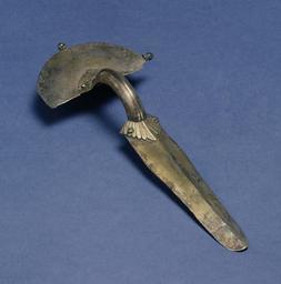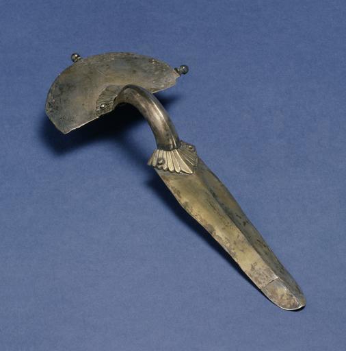 | Keywords: Visigothic - Bow Fibula - Walters 571878 - Top Three Quarter.jpg Bow fibula were used in pairs to fasten clothing on each shoulder of the wearer usually a woman This type of elegant silver fibula was popular with the Visigoths with its clean and simple lines The three knobs one missing projecting off the head-plate would have held the springs of the pin while the metal strips to which they are attached would have reinforced the thin silver century 5 6 Early Medieval silver cm 18 7 2 2 4 accession number 57 1878 29148 Carlebach Gallery New York date and mode of acquisition unknown Walters Art Museum March 10 1959 by purchase Museum purchase with funds provided by the S A P Fund 1959 Jewelry - Ancient to Modern The Walters Art Gallery Baltimore 1979-1980 Heirs of the Empire in North Africa-The Kingdom of the Vandals Badisches Landesmuseum Karlsruhe Karlsruhe 2009-2010 place of origin Spain Walters Art Museum license Blechfibeln sheet brooches Medieval metalwork in the Walters Art Museum Jewellery in the Walters Art Museum Visigothic art Visigothic fibulae Ancient Germanic fibulae in the United States Julius Carlebach 5th-century works |