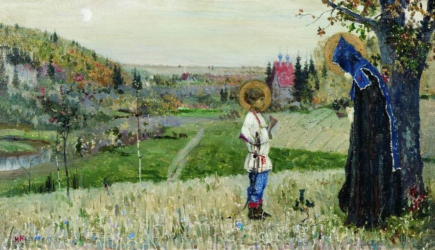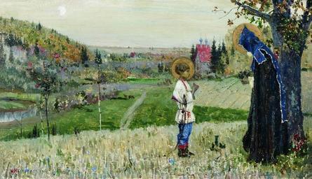 | Keywords: Vision of the child Bartholomaeus (Astrakhan, sketch).jpg  Последний эскиз к ка тине Видение от оку Ва фоломею Аст аханская госуда ственная ка тинная гале ея им П  Догадина http //www museum ru/C3200 19 c Nesterov Vision of the child Bartholomaeus Files uploaded by Shakko from various sources PD-Art |