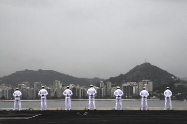 | Keywords: Visit to Brazil DVIDS255844.jpg en Sailors aboard the aircraft carrier USS Carl Vinson man the rails before the ship anchors off the coast of Rio de Janeiro Carl Vinson is taking part in Southern Seas 2010 as part of a scheduled homeport shift 2010-02-26 https //www dvidshub net/image/255844 100226-N-+++++-153 2010-03-01 21 18 RIO DE JANEIRO BR PD-USGov-Military-Navy USS Carl Vinson CVN-70 Southern Seas 2010 Images from DoD uploaded by Fæ | ||||