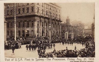 | Keywords: 1908 american fleet americanfleet procession parade sydney usa fleet usafleet vintage postcard australia crowd sailors navy photo border architecture skyline outdoor Visit of U.S.A. Fleet to Sydney - The Procession, August 21, 1908 Explore Aussie~mobs' 9124 photos on Flickr! |