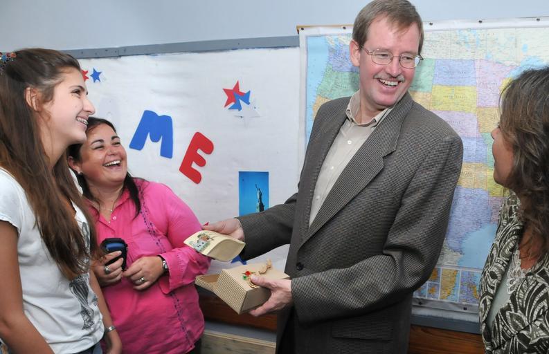 | Keywords: lavalleja minas uruguay peña nelson bnc alianza people El embajador Nelson recibe un obsequio durante su visita a la Alianza Cultural Uruguay-EE.UU. en Minas. [U.S. Embassy photo by Vince Alongi / Copyright info] El embajador Nelson recibe un obsequio durante su visita a la Alianza Cultural Uruguay-EE.UU. en Minas. [U.S. Embassy photo by Vince Alongi / Copyright info] |