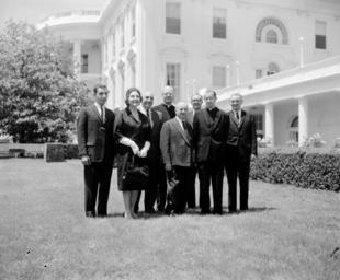 | Keywords: u.s. national archives usnationalarchives jfk presidential library jfkpresidentiallibrary blackandwhite monochrome black and white Original Caption: Visitors on East Lawn We are looking for your help in identifying unknown people in our White House Photographs collection. If you have any information about this photograph, please post a comment, including any relevant sources, for the catalogers at the John F. Kennedy Presidential Library. Thank you! Local Identifier: JFKWHP-ST-132-1-61 Created By: President (1961-1963 : Kennedy). Office of the Naval Aide to the President. (1961 - 1963) From: President (1963-1969 : Johnson). White House Photograph Office. (1963 - 1969) Contact: John F. Kennedy Library (LP-JFK), Columbia Point Boston, MA 02125-3398 Phone: 617-514-1600 Fax: 617-514-1652 Email: kennedy.library@nara.gov Production Dates: 5/31/1961 Scope and Content Note: This is a photograph of eight unidentified visitors on the East Wing Lawn, White House, Washington, D.C. Persistent URL: JFK Library URL: www.jfklibrary.org/Asset-Viewer/Archives/JFKWHP-ST-132-1-... Access Restrictions: Unrestricted Use Restrictions: Unrestricted Original Caption: Visitors on East Lawn We are looking for your help in identifying unknown people in our White House Photographs collection. If you have any information about this photograph, please post a comment, including any relevant sources, for the catalogers at the John F. Kennedy Presidential Library. Thank you! Local Identifier: JFKWHP-ST-132-1-61 Created By: President (1961-1963 : Kennedy). Office of the Naval Aide to the President. (1961 - 1963) From: President (1963-1969 : Johnson). White House Photograph Office. (1963 - 1969) Contact: John F. Kennedy Library (LP-JFK), Columbia Point Boston, MA 02125-3398 Phone: 617-514-1600 Fax: 617-514-1652 Email: kennedy.library@nara.gov Production Dates: 5/31/1961 Scope and Content Note: This is a photograph of eight unidentified visitors on the East Wing Lawn, White House, Washington, D.C. Persistent URL: JFK Library URL: www.jfklibrary.org/Asset-Viewer/Archives/JFKWHP-ST-132-1-... Access Restrictions: Unrestricted Use Restrictions: Unrestricted |