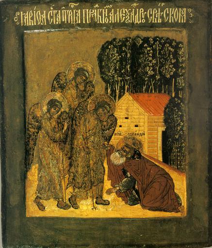 | Keywords: Vission of st. Alexander.jpg Vission of st Alexander Явление Святой Т оицы п еподобному Александ у Сви скому http //www obraz org/index php menu iconography base 1 struct 159 icon_id 105 century 17 anonimus Icons of Russia Art of the Russian Orthodox Church PD-Art Icons of saints - A Old Testament Trinity Alexander Svirsky |