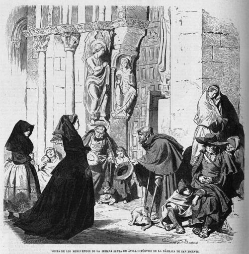 | Keywords: Vista de los monumentos de la Semana Santa en Ávila, pórtico de la basílica de San Vicente, de Valeriano Domínguez Bécquer.jpg El Museo Universal 1868 4 4 El Museo Universal Vista de los monumentos de la Semana Santa en Ávila pórtico de la basílica de San Vicente 12 14 108 http //prensahistorica mcu es/es/catalogo_imagenes/grupo cmd interno S posicion 4 path 7147878 presentacion pagina date 1868 4 4 1889-8440 Dibujo Creator Valeriano Domínguez Bécquer Grabado Creator Arturo Carretero y Sánchez PD-Scan PD-old-auto-1923 1903 La pobreza al amparo de la Iglesia de Valeriano Domínguez Bécquer jpg 200px El Museo Universal Valeriano Domínguez Bécquer Engravings by Arturo Carretero 1868 Ávila in art Basilica of San Vicente Ávila |