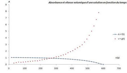 | Keywords: Vitesse volumique et absorbance d'une solution de permanganate de potassium et d'acide oxalique en fonction du temps.JPG Vitesse volumique et absorbance d'une solution de permanganate de potassium et d'acide oxalique en fonction du temps Excel 2007 10/10/07 Anthony Potassium permanganate Oxalic acid | ||||