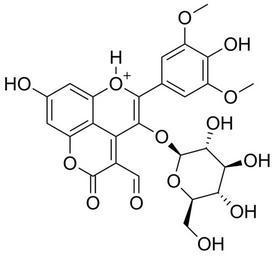 Keywords: Vitisin A.svg Chemical structure of vitisin A w en Vitisin A pyranoanthocyanin Own 13 35 23 May 2011 UTC Ed Edgar181 Pyranoanthocyanins Glucosides