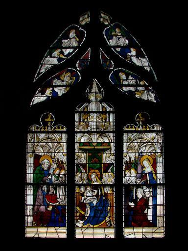 | Keywords: Vitrail Cathédrale de Moulins 160609 11.jpg fr Basilique-cathédrale Notre-Dame de l'Annonciation de Moulins; vitrail de la Vierge au trône fin du 15ème siècle own Vassil 2009-06-18 Madonna and Child Enthroned with two donors stained-glass windows in Moulins cathedral |
