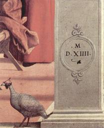 | Keywords: Vittore Carpaccio 061.jpg Artwork de Gemäldezyklus zur Legende des Hl Stephan Szene Streitgespräch des Hl Stephan Detail Oil Canvas de Mailand de Pinacoteca di Brera de Urspr Gemäldezyklus für eine venezianische Scuola The Yorck Project 10 000 Meisterwerke der Malerei DVD-ROM 2002 ISBN 3936122202 Distributed by DIRECTMEDIA Publishing GmbH 1514 Creator Vittore Carpaccio http //mail wikipedia org/pipermail/wikide-l/2005-April/012195 html Other versions PD-old-100 PD-Art-YorckProject Disputation of Saint Stephen by Carpaccio Latin inscriptions in Milan Architectural dates 1514 Paintings of birds |