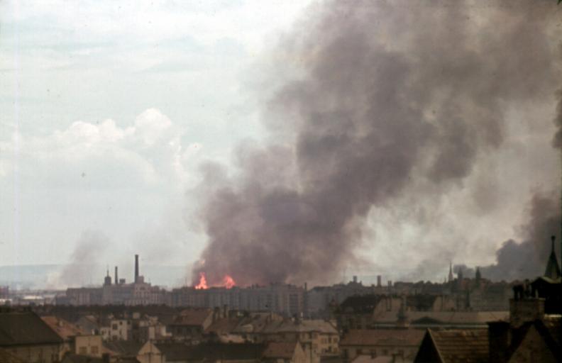 | Keywords: Vízivárosi háztetők, kilátás a Fiáth János utca irányából Újlipótváros felé, háttérben a lángoló Angyalföld az ipartelep szőnyegbombázása után. Fortepan 4947.jpg hu vízivárosi háztetők kilátás a Fiáth János utca irányából Újlipótváros felé háttérben a lángoló Angyalföld az ipartelep szőnyegbombázása után Location Hungary Budapest XIII Budapest I Tags bombing war damage fire colorful picture second World War smoke Budapest Title vízivárosi háztetők kilátás a Fiáth János utca irányából Újlipótváros felé háttérben a lángoló Angyalföld az ipartelep szőnyegbombázása után http //www fortepan hu/_photo/download/fortepan_9805 jpg 1944 Fortepan 4947 http //www fortepan hu/_photo/download/fortepan_9805 jpg http //www fortepan hu/ lang en img 4947 Unknown The release at fortepan hu is CC-BY-SA-3 0 As the photographer is unknown or pseudonymous and the photograph is Age 1944 01 01 years old it is considered public domain both in the country of publication Hungary and the USA where Wikimedia Commons is hosted See Fortepan HU for more information on related uploads PD-anon-70-EU PD-anon-auto-1996 1944 Hungary DEFAULTSORT Fortepan 004947 1944 photographs Images uploaded by Fæ Colour photographs from Fortepan World War II color photographs in Hungary 1944 in Budapest Bombing of Hungary in World War II Military history of Hungary during World War II |