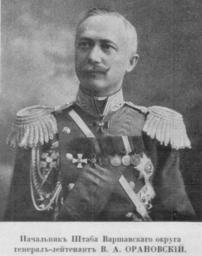 | Keywords: Vladimir Oranovskii.jpg ачальникъ Штаба Ва шавскаго ок уга гене алъ-лейтенантъ ВЛАДИ ІРЪ АЛОИЗІЕВИЧЪ ОРА ОВСКІЙ Жу нал Летопись Войны 1914 года выпуск 2 ст 37 Скан 1914 Author PD-old 1866 births 1914 portrait photographs 1917 deaths 20th-century black and white portrait photographs of men at bust length 20th-century men of Russia Black and white portrait photographs of military people in uniform Generals of the Russian Empire Knights of the Order of St Alexander Nevsky Knights of the Order of St Anna Knights of the Order of St Vladimir Men with moustaches People with medals Recipients of the Order of Saint George IV Class Recipients of the Order of Saint Stanislaus Russian Recipients of the Order of St Vladimir 2nd class Recipients of the Order of the White Eagle in portraits Russian military personnel of the Great War Russian military personnel of the Russo-Japanese War |