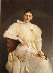 | Keywords: Vlaho Bukovac - Portret žene v beli obleki.jpg Artwork creator Vlaho Bukovac 1894 oil canvas cm 130 5 94 5 Institution National Gallery of Slovenia 907 PD-old-auto 1922 Paintings by Vlaho Bukovac 1894 paintings in Slovenia 19th-century paintings in the National Gallery of Slovenia 19th-century portrait paintings in Slovenia 19th-century oil on canvas paintings in Slovenia 19th-century oil portraits of sitting women at three-quarter length 1894 oil on canvas paintings 1894 portrait paintings Females with white dresses in art |