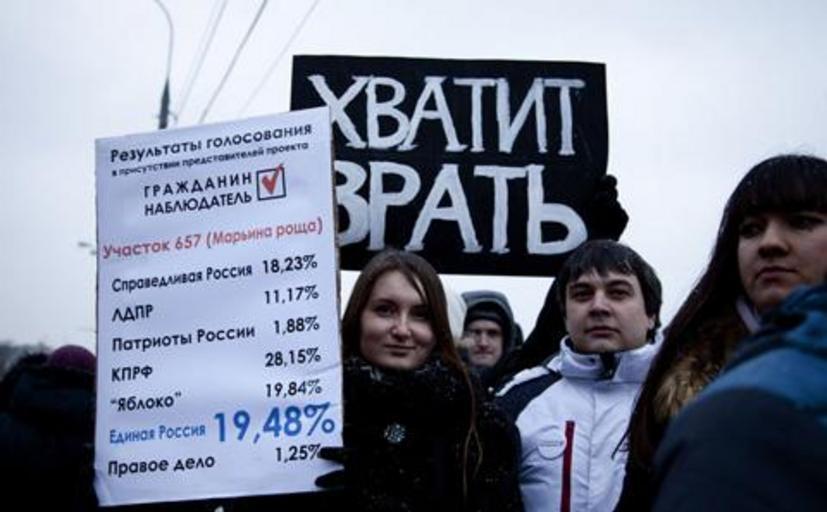 | Keywords: VOA Yuli Weeks Russia Protests Moscow Sign 12 20 2011 480.jpg en Protesters gathered in central Moscow Saturday to express their discontent with recent parliamentary elections which observers say were tainted by ballot-stuffing and fraud on behalf of Mr President Vladimir Putin ™s party United Russia http //www voanews com/english/news/europe/Russians-Protest-Alleged-Voter-Fraud-135369778 html Photo VOA - Yuli Weeks 2011-12-10 PD-USGov-VOA Demonstration during the 2011-2012 Russian protests in Moscow 10 December 2011 |