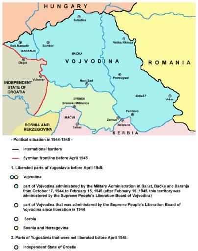 | Keywords: Vojvodina 1944 1945 01.png English Vojvodina from October 1944 to April 1945 - territory of Military Administration in Banat Bačka and Baranja and Syrmian frontline Serbian Војводина од октоб а 1944 до ап ила 1945 године - под учје Војне уп аве у Банату Бачкој и Ба ањи и линија С емског ф онта 2009-06-29 own assumed PANONIAN self made map by user PANONIAN References Nikola Gaćeša - Dušan Živković - Ljubica Radović Istorija za III razred gimnazije prirodno-matematičkog smera i IV razred gimnazije opšteg i društveno-jezičkog smera Beograd 1997 Jelena Popov Vojvodina i Srbija Veternik 2001 Dimitrije Boarov Politička istorija Vojvodine Novi Sad 2001 Dragomir Jankov Vojvodina - propadanje jednog regiona Novi Sad 2004 Istorijski atlas Geokarta Beograd 1999 Školski istorijski atlas Zavod za izdavanje udžbenika SR Srbije Beograd 1970 Povijesni atlas Učila - Zagreb Zagreb 1971 Povijesni atlas za osnovnu školu Kartografija - Tlos - Zagreb Zagreb 1975 Denis Šehić - Demir Šehić Istorijski atlas sveta Beograd 2007 Istorijski atlas Intersistem kartografija Beograd 2010 SAP Vojvodina Military Administration in Banat Bačka and Baranja Syrmian Front Maps of the history of Vojvodina Maps of the history of Syrmia Maps of the history of Bačka Maps of the history of Banat Maps of the history of Baranja Maps of Yugoslavia during World War II Maps of Serbia during World War II Maps of the Independent State of Croatia |