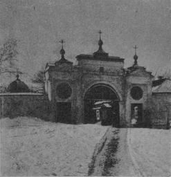 | Keywords: Vologda - Gorny monastery - Gates.jpg Cultural Heritage Russia 3500015000 Gates of Gorny monastery in Vologda Во ота Го не-Успенского женского монасты я в Вологде book scan «Вологда в её ста ине» 1914 Г К Лукомский 59 13 54 N 39 52 16 E region RU_type landmark PD-RusEmpire Gorny monastery in Vologda |