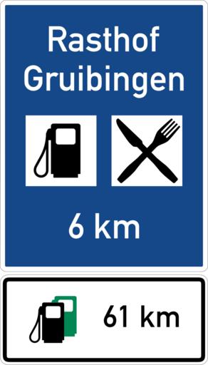 | Keywords: Vorankündigung einer Autobahnraststätte in Kombination mit dem Hinweis auf eine bleifreie Tankstelle, 1988.svg de Vorankündigung einer Autobahnraststätte in Kombination mit dem Hinweis auf eine bleifreie Tankstelle Nach einem Pressefoto vom 22 03 1988 in den Göppinger Kreisnachrichten http //www albaufstieg-aichelberg de/pix/96_5a_380 jpg Das Schild befand sich an der ehemaligen Autobahntrasse beim Albaufsteig am Aichelberg kurz vor der heutigen Grünbrücke über die neue Autobahntrasse Spätestens nachdem die neue Trasse am 8 Juli 1990 eröffnet worden war wurden die an der alten Trasse gelegenen Verkehrszeichen wie dieses abgebaut own Mediatus 04 Oktober 2013 Herstellungsdatum + Signs 48 37 45 06 N 9 34 24 50 E User Mediatus/no-new-version Cc-zero PD-VzKat German language signs Diagrams of motorway road signs of Germany Diagrams of direction road signs of Germany Diagrams of historic road signs of Germany 1985 set SVG road signs in Germany Road signs with gas station pictogram |