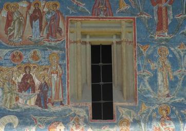 | Keywords: Voronet murals 2010 10.jpg Voroneţ Monastery Romania The church is one of the Painted churches of northern Moldavia listed in UNESCO's list of World Heritage sites own photo 14 d'Août 2010 Man vyi Own work all rights released Public domain Murals in Voroneț Murals and icons on the exterior of churches Windows in Romania |