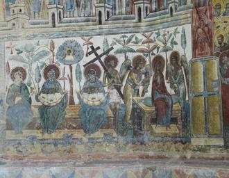 MAKE A MEME View Large Image Voronet murals 2010 21.jpg Voroneţ Monastery Romania The church is one of the Painted churches of northern Moldavia listed in UNESCO's list of World Heritage sites own photo 14 d'Août 2010 Man vyi Own work all rights released Public ...