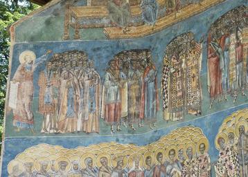 | Keywords: Voronet murals 2010 23.jpg Voroneţ Monastery Romania The church is one of the Painted churches of northern Moldavia listed in UNESCO's list of World Heritage sites own photo 14 d'Août 2010 Man vyi Own work all rights released Public domain Murals in Voroneț Murals and icons on the exterior of churches Frescos of the Last Judgment |