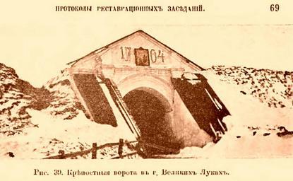 Keywords: Vorota velikiye luki.jpg ru К епостные во ота в г Великих Луках Известия Импе ато ской А хеологической комиссии Пет ог ад 1914 Вып 55 Воп осы естав ации; вып 14 С 68-70 с ил author 1914 PD-RusEmpire Velikiye Luki PD-old