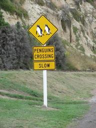 Keywords: Vorsicht Pinguine.JPG en Traffik-sign attention penguins Oamaru NZ de Vorsicht Pinguine Verkehrsschild in Oamaru Neuseeland own Reinhard Dietrich 2012-02 Oamaru Black white yellow road signs Penguin-related warning road signs Cc-zero