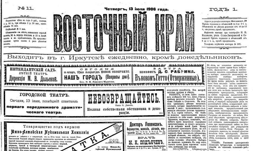 | Keywords: Vosochniy kray.jpg ru Газета Восточный к ай Издавалась в И кутске И кутская го одская библиотека Редакция газеты Восточный к ай 1906-07-13 PD-old Newspapers of Russia 1906 13 July Media of Irkutsk History of Irkutsk Newspapers of Russia to be categorised by name |